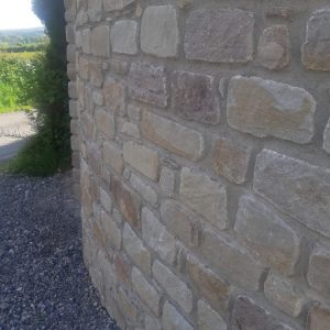 Roscrea Sandstone has a bright blue/grey with a small hint of cream. This stone is very durable and hard wearing. This stone is suitable for facing your new home or building that boundary wall . We produce this stone in three sizes also XL for your cornerstones and standard for that mid sized building stone. For depth spaces are limited this product is available in 100mm depth or 40mm veneer if required.